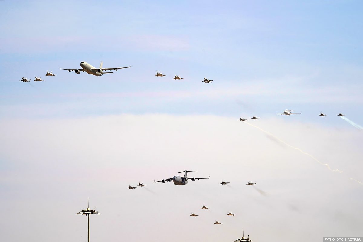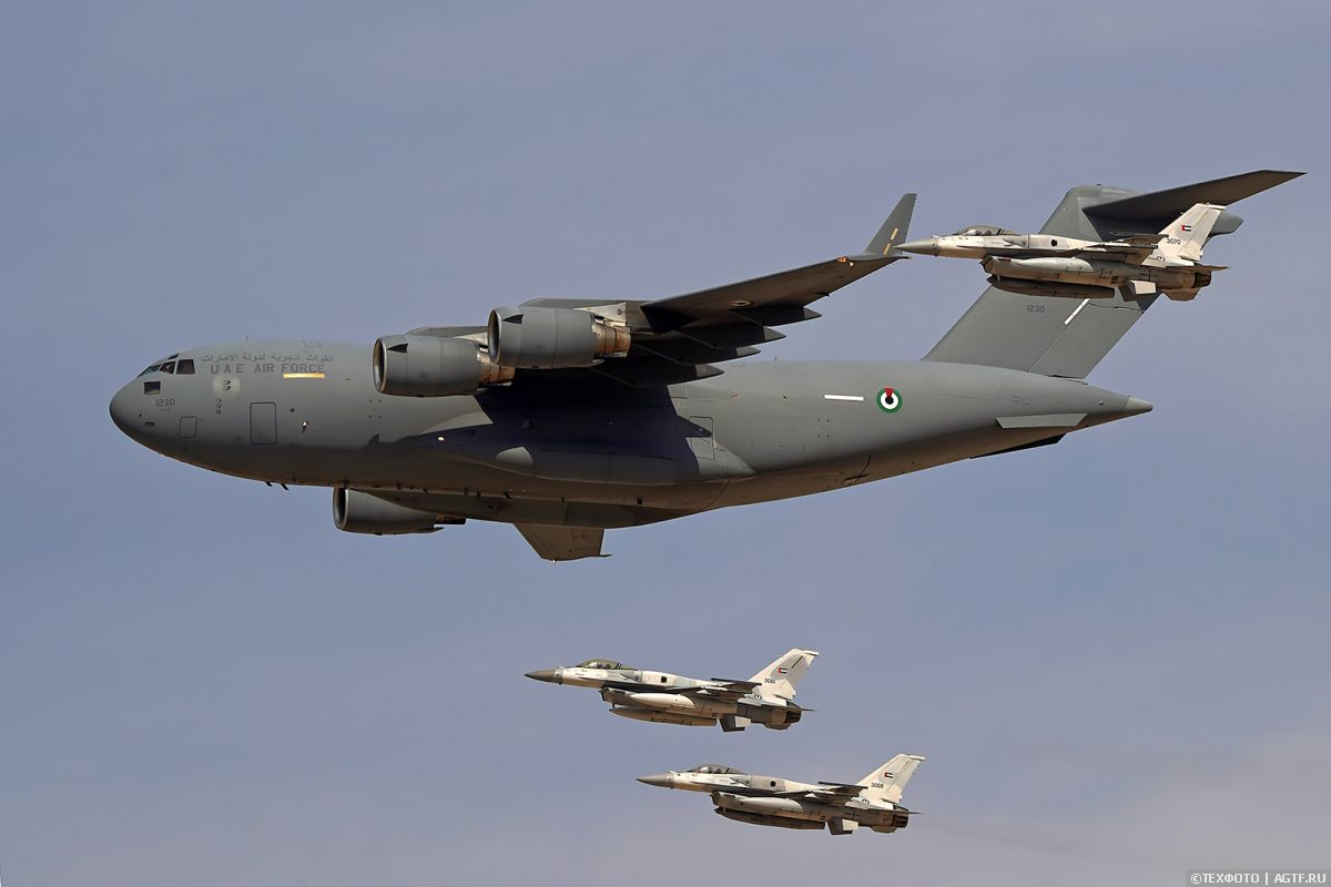 Здесь же солидная колонна Военно-воздушных сил страны хозяйки авиасалона – ОАЭ.