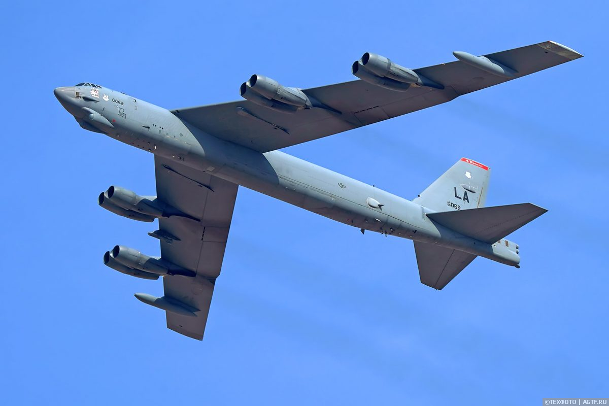 Заверши выступление очередным эффектным роспуском эмиратские пилотажники уступили место солидному гостю. Старинный B-52 Stratofortress ВВС США сделал проход, «разукрасив» небо дымным выхлопом восьми винтажных двигателей.