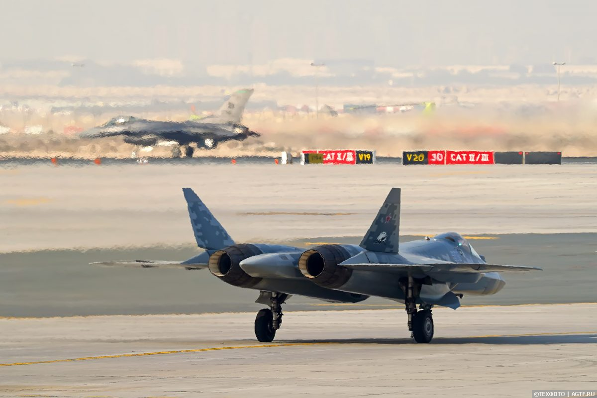 Истребитель пятого поколения Су-57 готов к участию в Dubai Airshow, и вот уже сокол USAF приземлился, уступаю полосу и небо российскому хищнику.