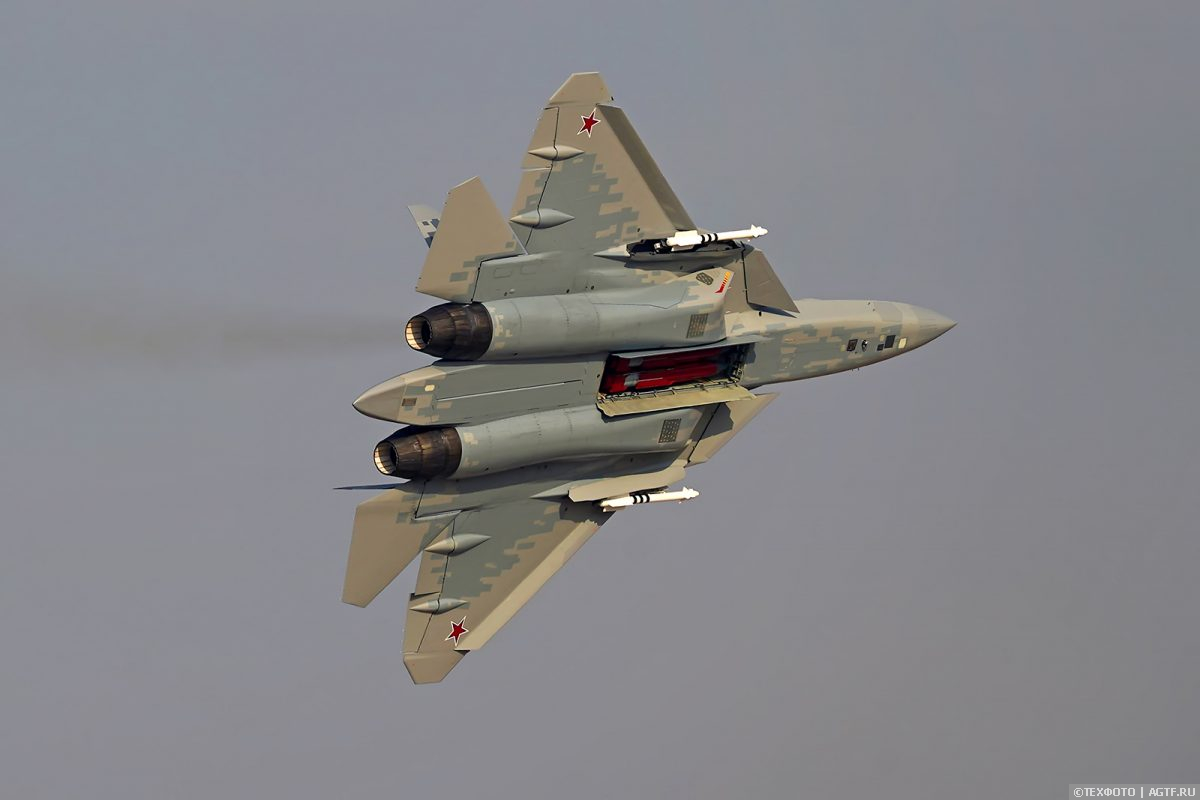 Посмотреть было на что. Впервые в истории Су-57 открыл для публики свои отсеки вооружения. Смотрелось очень серьезно.