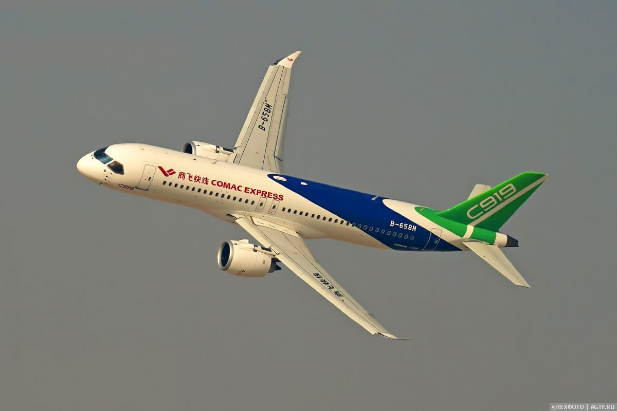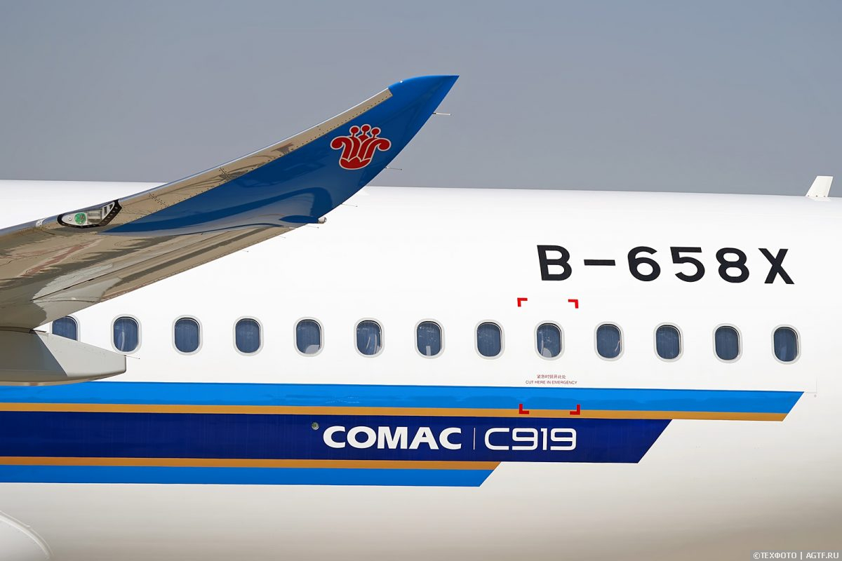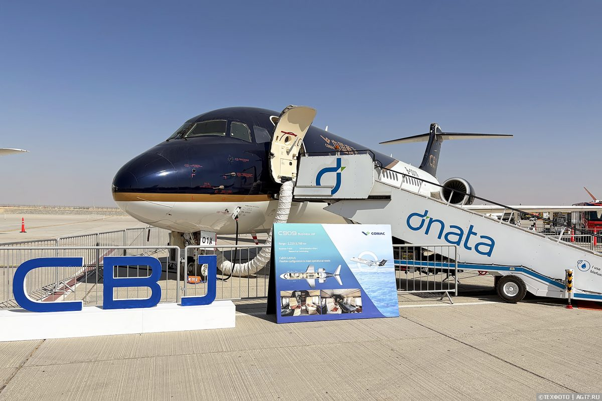Рядом со старшим братом припаркован региональный C909 в модификации CBJ – COMAC Business Jet. Внутри салон, который не очень отличается от аналогичных в аналогах.