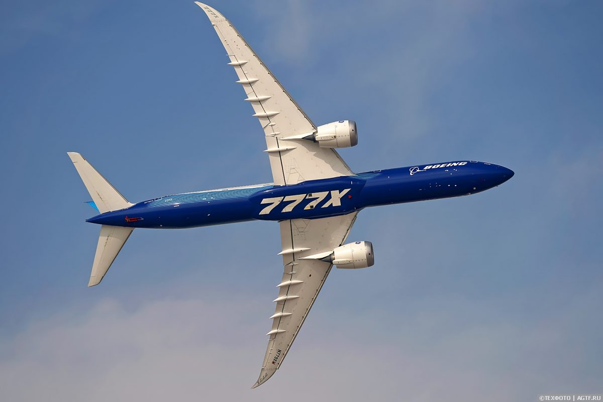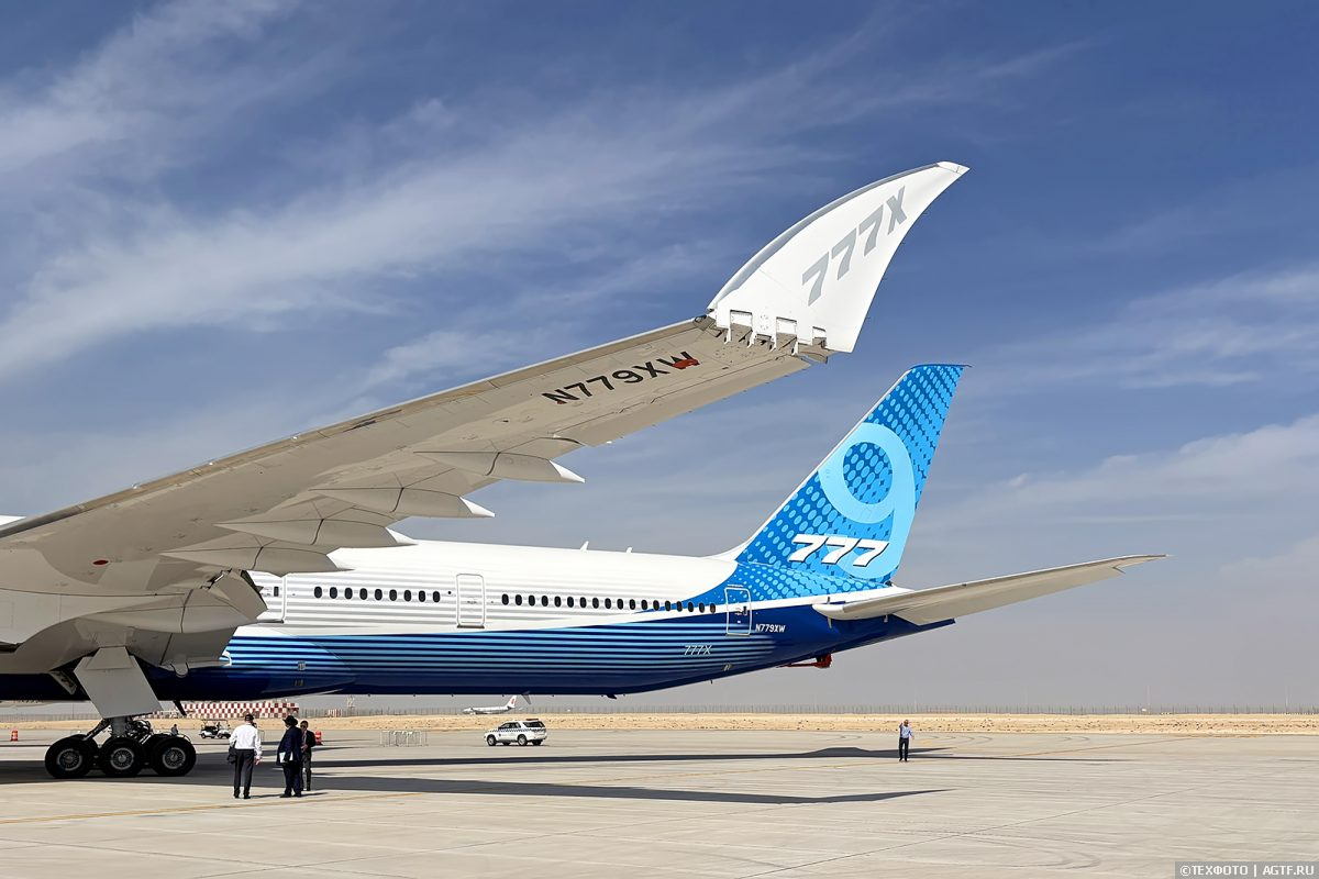 777-9X стал настоящей звездой салона. Самолет, который является развитием проверенного и надежного Boeing 777 довольно трудно вводится в эксплуатацию (во многом этому поспособствовала пандемия COVID-19). Стартовый заказчик Lufthansa ожидает начало коммерческой эксплуатации в 2027г. С нетерпением ждут и юбиляры из Emirates – крупнейший заказчик 777X. Возвращаясь к самому самолету хочется отметить, что самым заметным нововведением стали складывающиеся (электроприводом за 20 секунд) трехметровые законцовки крыльев, уменьшающие габариты лайнера на земле.