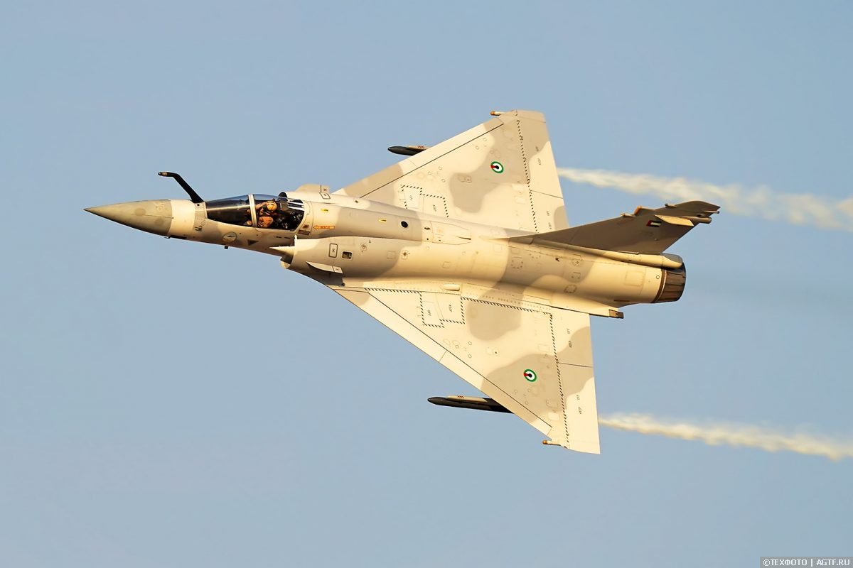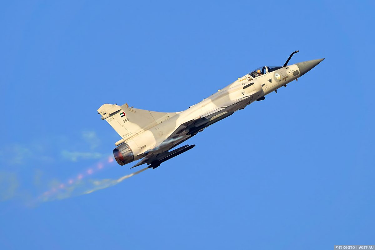 Военная авиация возвращается на Dubai Airshow в виде французского Mirage 2000 стоящего на вооружение ВВС ОАЭ. Классика форм и мощный форсаж в мягком послеобеденном свете подарили гостям авиасалон истинное наслаждение от зрелища полета.