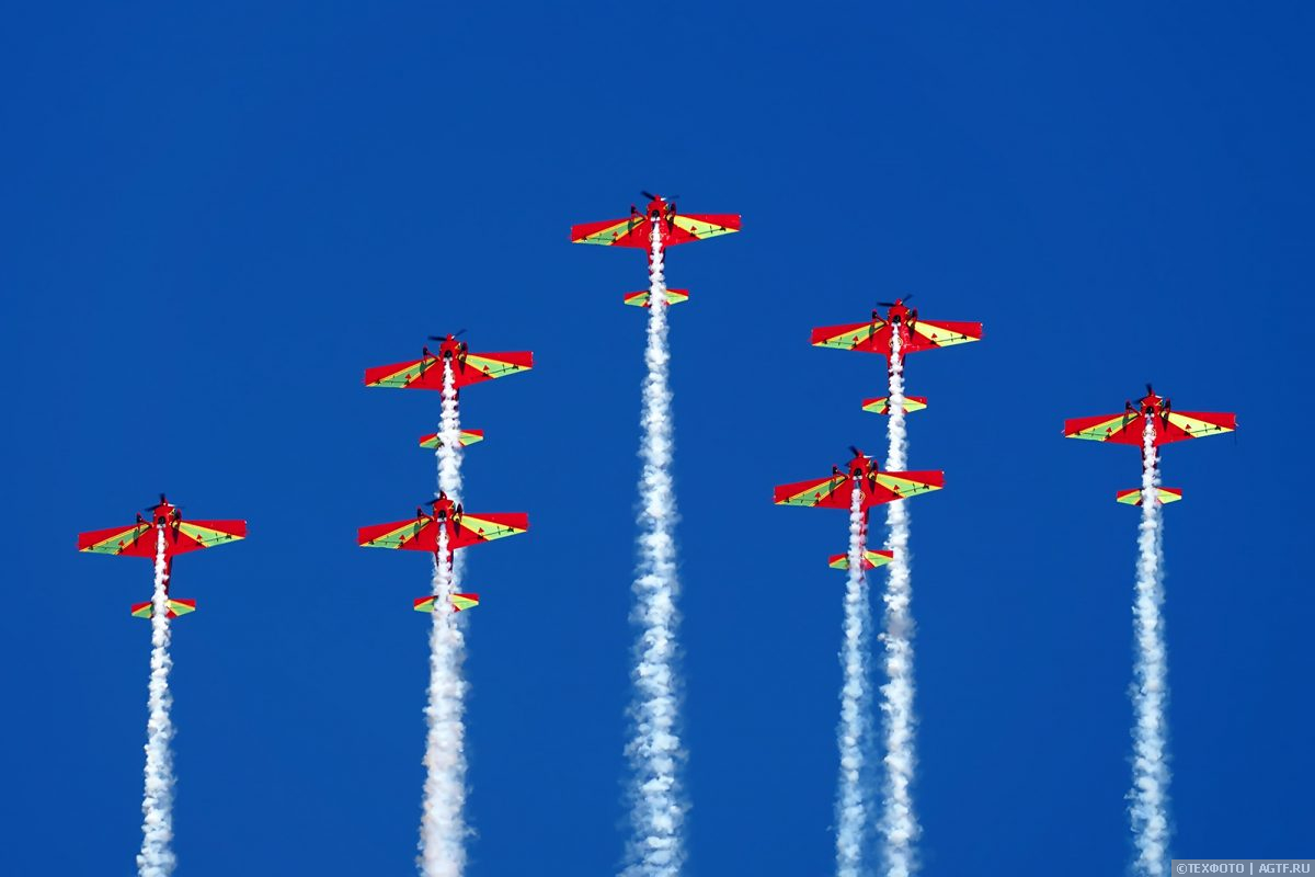 Чтобы не заканчивать на грустной ноте, авиация идет вперед, расскажем и покажем пилотажные группы, выступавшие на Dubai Airshow. Первой из них будет Marche Verte (Зеленый Марш) – пилотажная группа ВВС Марокко, выступающая на легких французских CAP 230. Не оглушая ревом двигателей или безумными скоростями, марокканцы показали дружный пилотаж, да и просто было интересно понаблюдать за такой экзотической пилотажной группой.