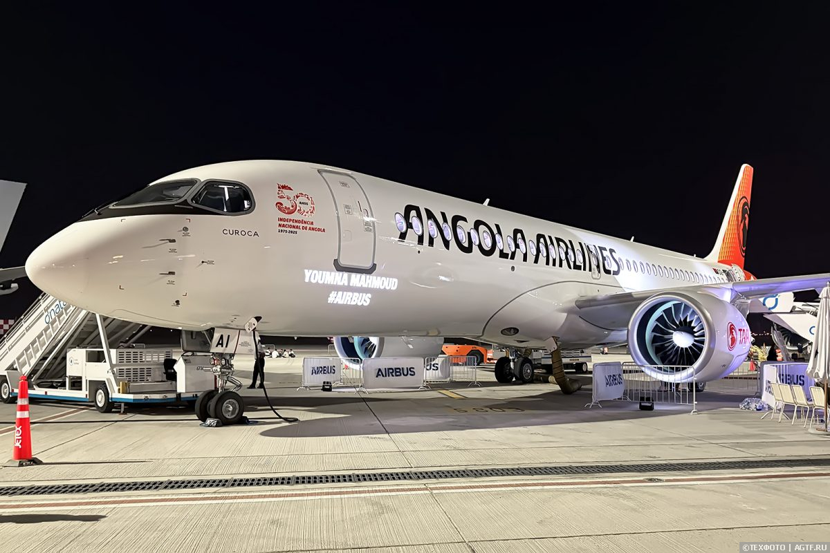 Из премьер на статической экспозиции еще необходимо отметить первый Airbus A220 для ангольского флагмана TAAG. К сожалению, с новыми самолетами «вводятся в эксплуатацию» и новые ливреи, следующие мировым трендам на минимализм и экономию. Надпись на белом борту и раскрашенный хвост – вот современные реалии цветовых схем. Впрочем, этот первенец украшен стикером в честь 50-летия независимости Анголы.