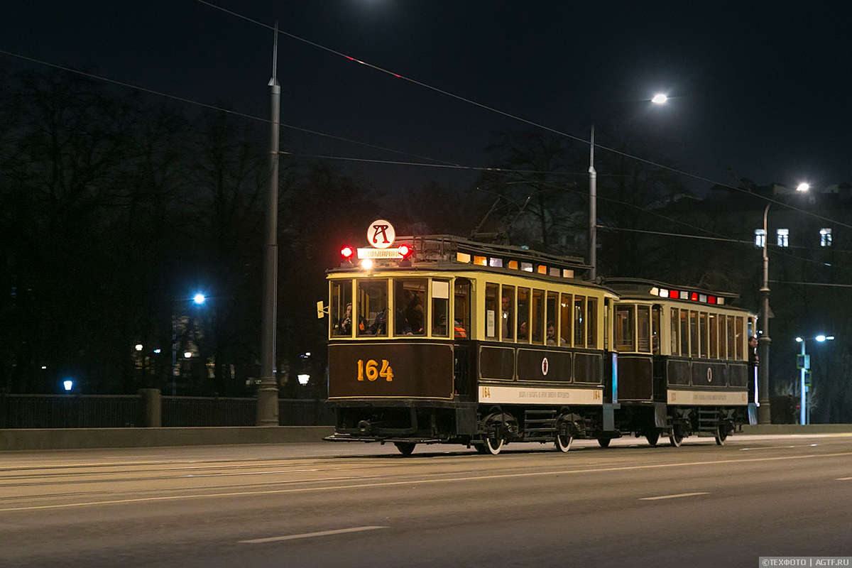 Традиционно возглазвит колонну вагон Ф (Фонарный), построенный в 1907 году.